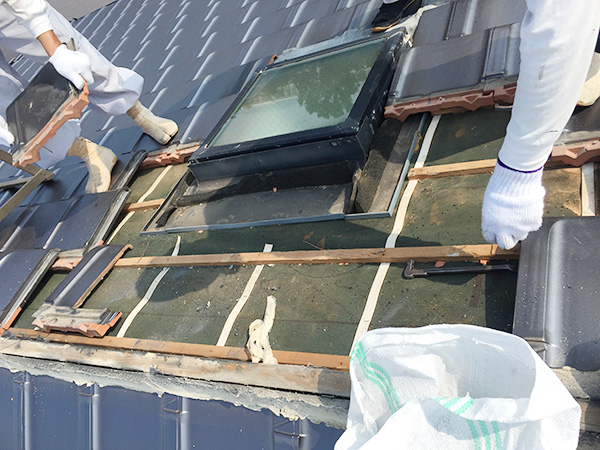 トップライト廻りからの漏水に対し、開口を塞ぎ原因の根本から解決した工事です。